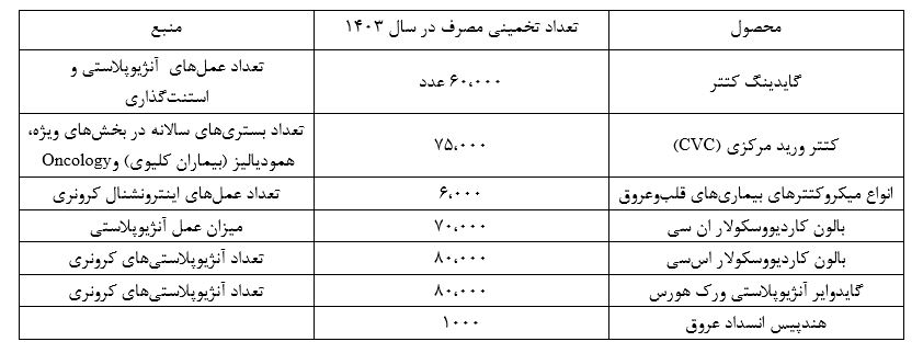 اقلام مصرفی حوزه قلب و عروق